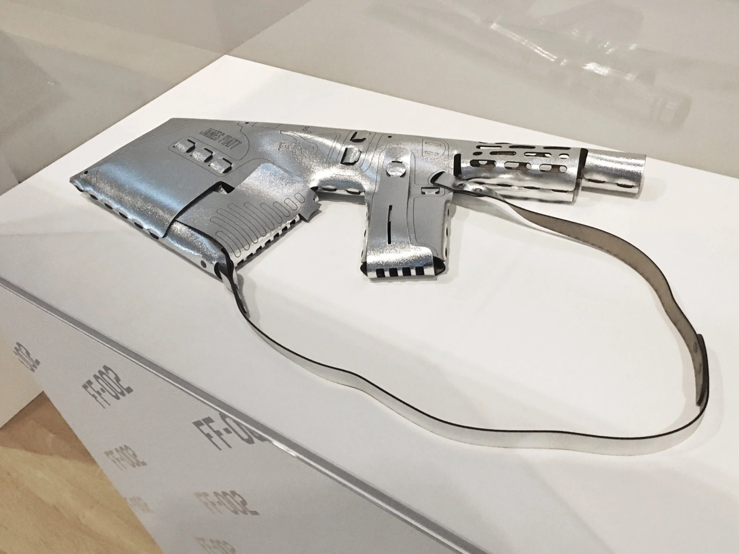 We created a special silver leather version of our popular Pursuader Handbag for an exhibition at the Design Museum in Frankfurt, Germany. The exhibition also included works by Alexander McQueen, Phillip Starck and Barbara Kruger.